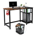 - 【Storage Function & Durability】: The computer desks with shelf dimensions are 47.2″L x 23.6″W. The wide computer desk has two storage shelves, which can be mounted on either the left or right sides of the desk, according to your preference. The small top shelf is adjustable – install it in the upper hole to make room for a large computer tower. The two wooden boards are fixed on metal bars to ensure load-bearing capacity. The desktop is waterproof and anti-scratch, and is very easy to clean.