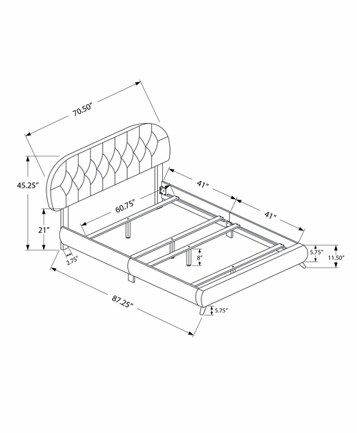 Beautify your home, while enabling yourself the utmost comfort, with this classy and contemporary queen size bed. This bed is a high quality piece, which has a marvelous design that will bring versatility and diversity to the look and feel of your home. It’s made from high grade foam, MDF, solid wood, and linen, which also contribute to its overall gorgeous appearance, while still giving you all the stability you’ll ever need. As for measurements, they’re 45.25 for height, 70.5′ for width, and 87.25′ for depth, and it weighs 62 pounds. This lovely bed will be the perfect piece for any d?cor.