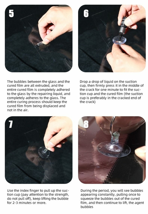 4. Only start curing when the repair liquid has fully penetrated under high pressure as the curing is irreversible.
