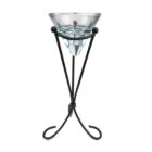 Beautiful glass candleholder on a black metal pedestal, suitable both for tea lights and taper candles. Metal pedestal is hand wrought and the glass candleholder is made of 100% recycled glass.