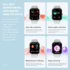 The fitness tracking watch contains multiple health monitoring modes including heart rate monitoring, blood oxygen monitoring, blood pressure monitoring and sleep monitoring ,allows you to understand your physical condition in real time to track fitness progress. Perform a comprehensive and integrated health quality analysis to help you develop a healthier lifestyle.