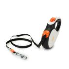 A tangle free retractable leash, lockable switch and tape leash so won’t cut or tangle. Product size 6.6″x 4.6″ x 1.5″ and weights 0.45lbs. For smaller pets.