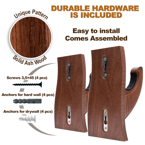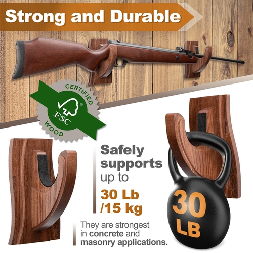REAL HARDWOOD. This Gun Rack is made of high-quality solid wood covered with a classic Brown finish that complements any room. Hooks are covered with felt-for fixation to give your gun the protection it deserves.