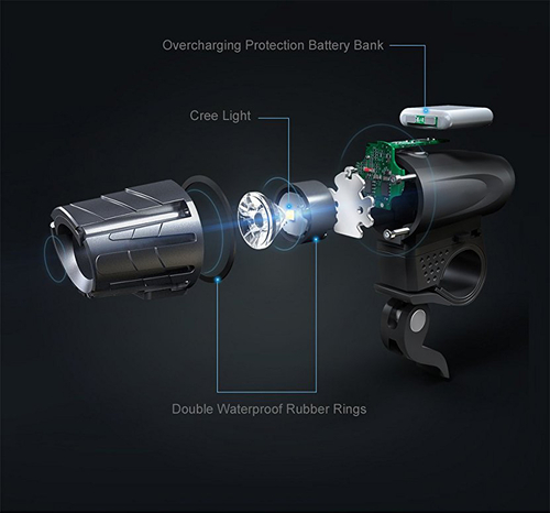 High Quality: The torch is made of solid aluminum and reflector by rugged ABS plastic. It won’t rust or corrode. This cycling light bundle will not only keep you safe and illuminate your path; it will also last longer. It is the perfect urban and mountain combo for its powerful white front light and red rear light with reflector.